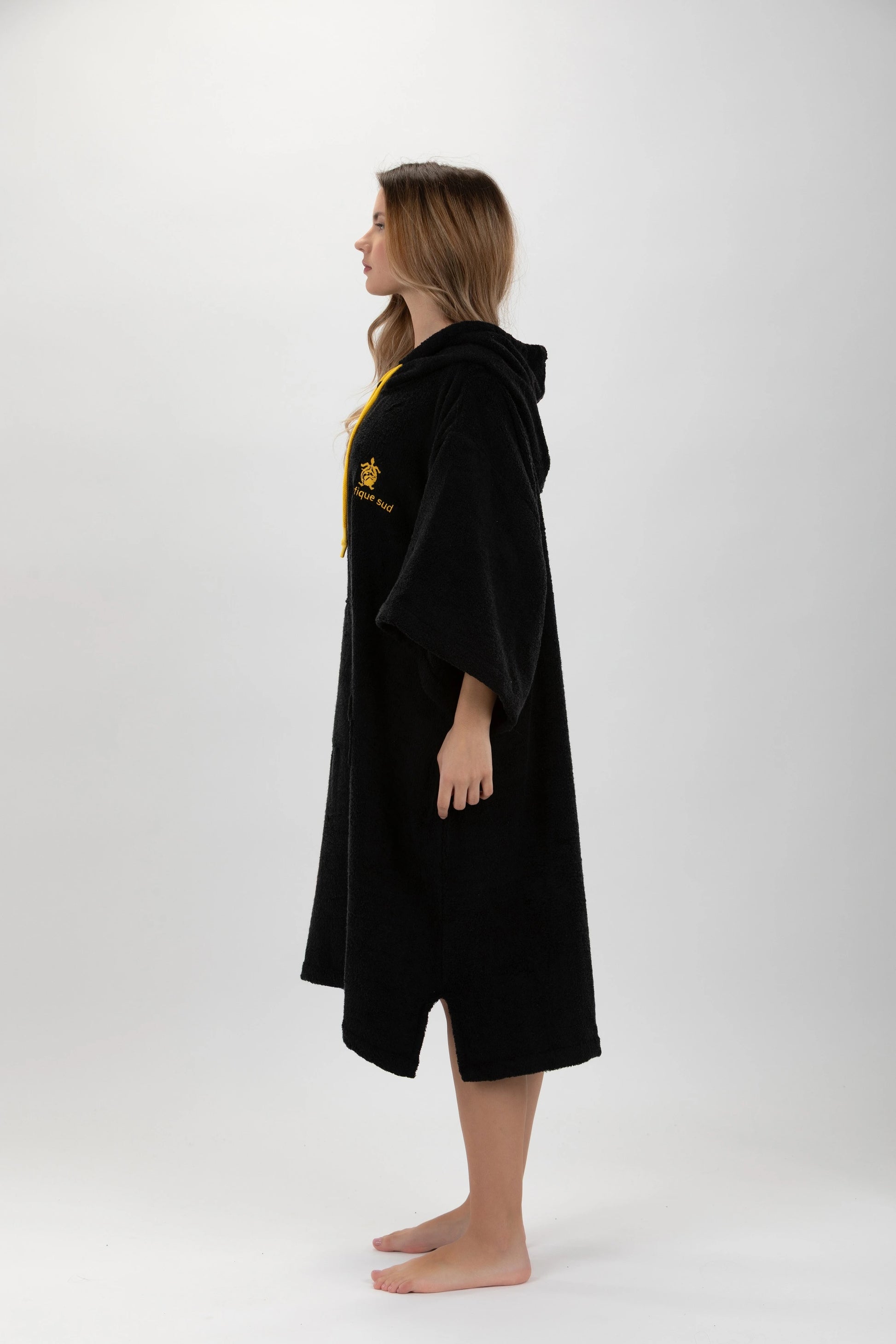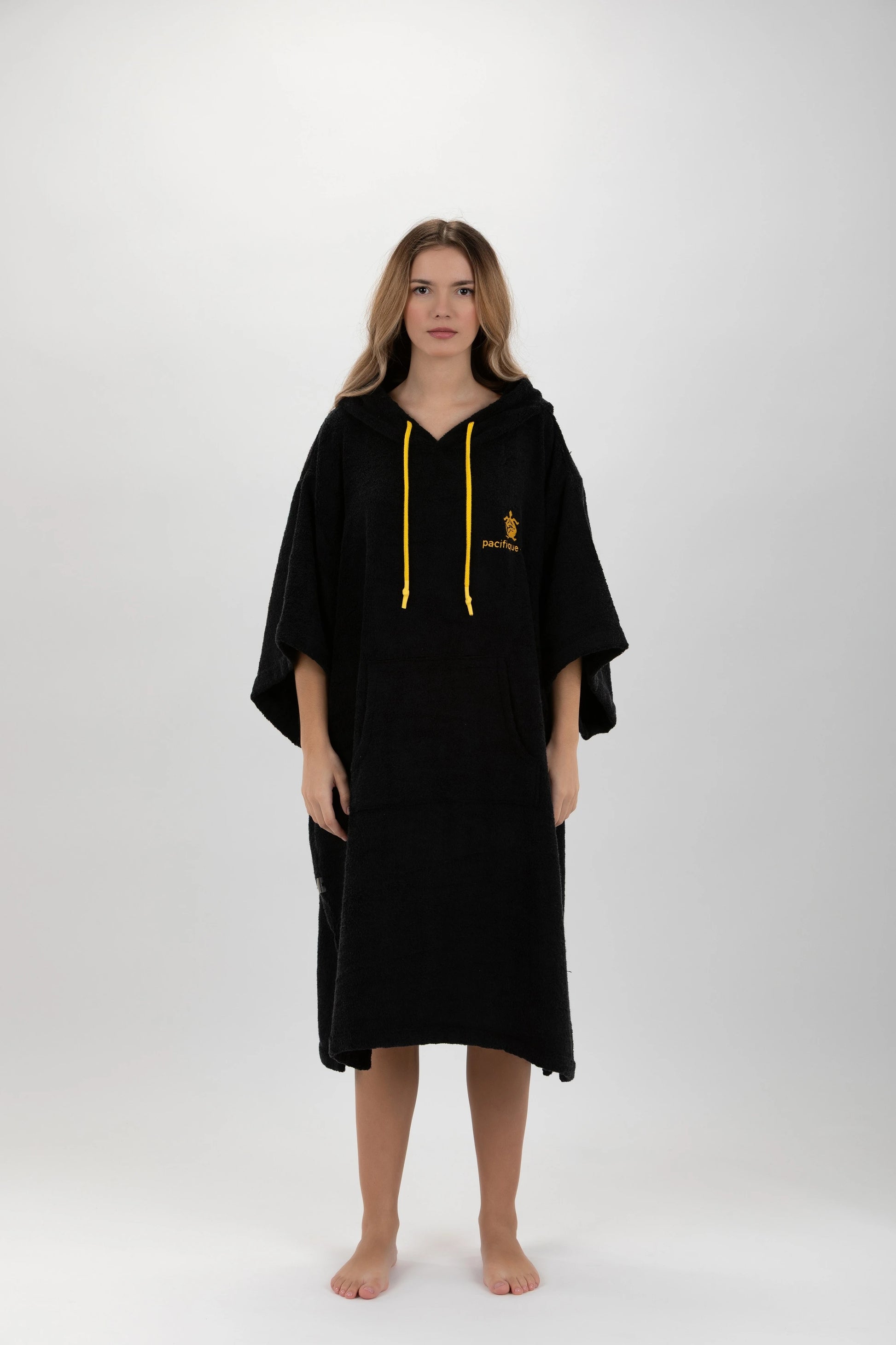 Poncho Surf Schwarz - Einheitsgröße - Tencel - Mit Ärmeln