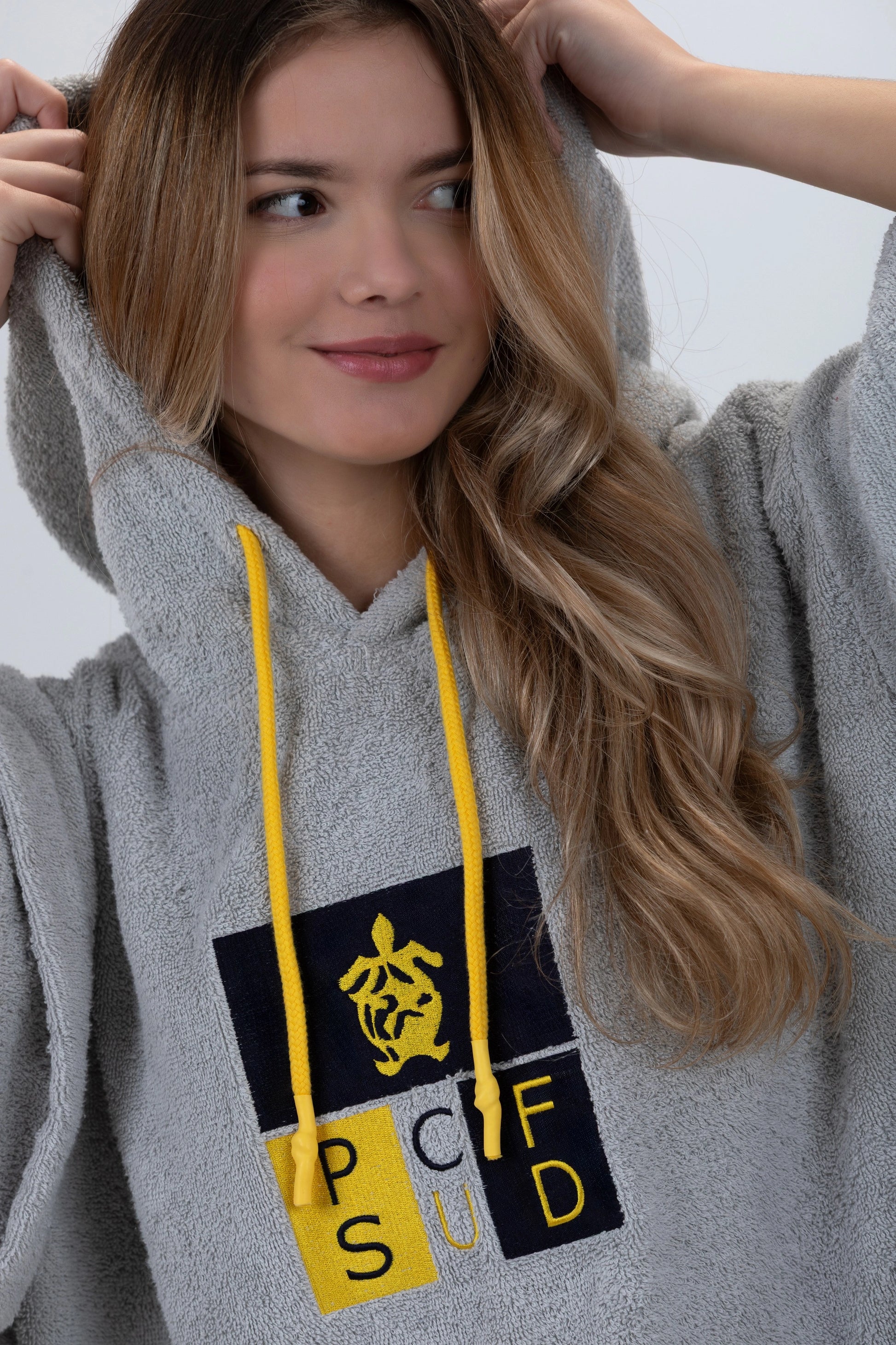 Surf Poncho Gris Clair - Taille Unique - Coton - avec manches